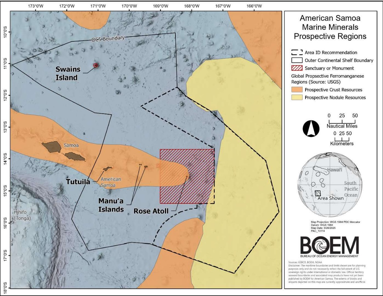 The U.S. Bureau of Ocean Energy Management (BOEM) has completed Area Identification offshore American Samoa, marking the first time U.S. waters have reached this stage in the federal seabed minerals process.