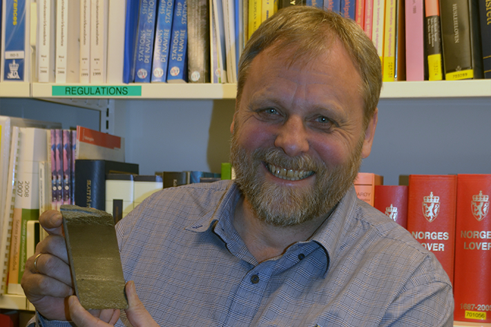 – Vi har gått gjennom borkaksbeskrivelsene fra 25/11-1, og «live oil» – de aller første sporene av olje på norsk kontinentalsokkel – ble rapportert denne dagen i mai da borekronen gikk gjennom intervallet 5394-5653 fot (1644 m-1722 m), forteller Dag Bergslien.