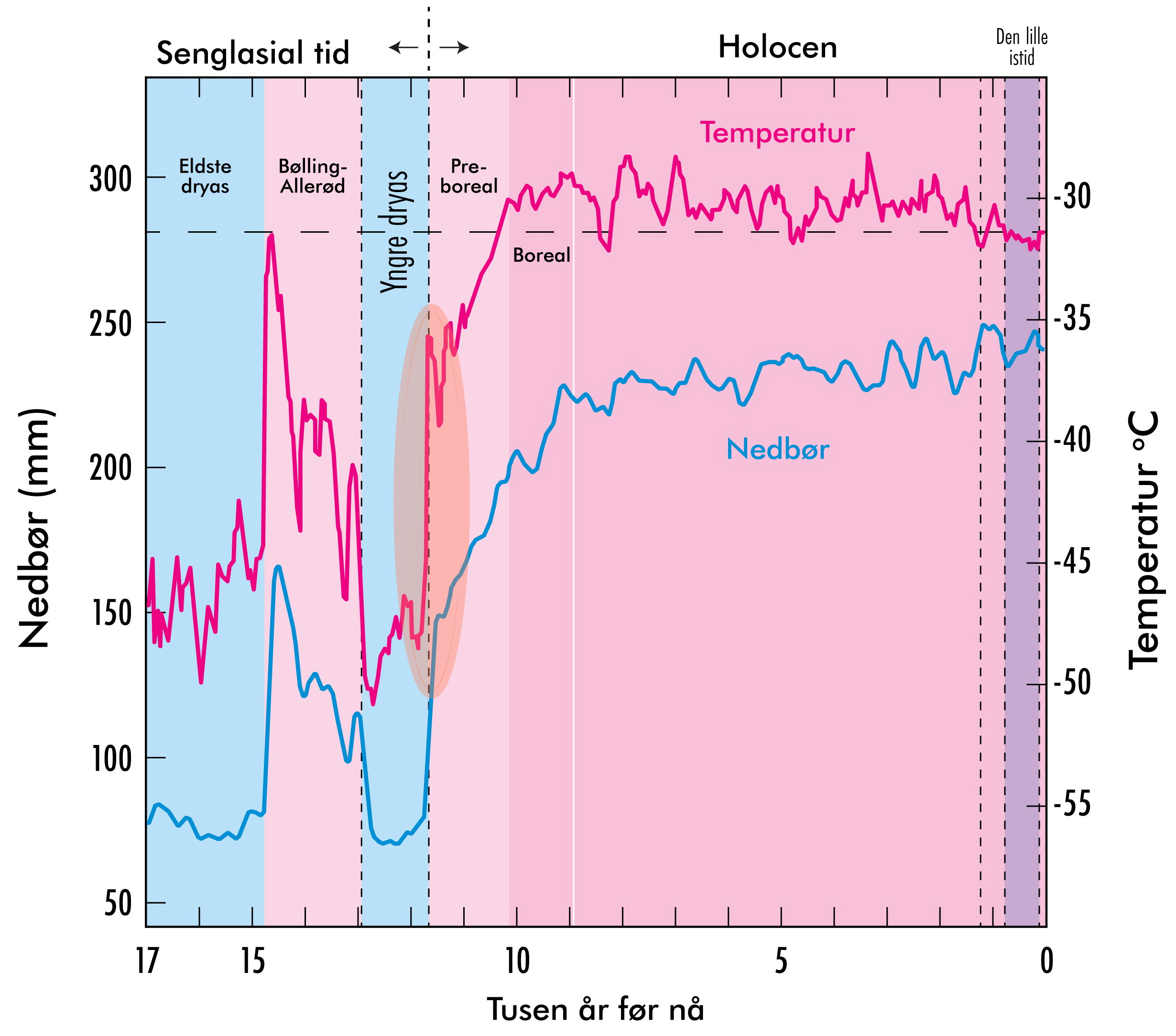 … de raskeste og voldsomste klimaendringene etter siste istids maksimum skjedde ved inngangen til og utgangen av yngre dryas.