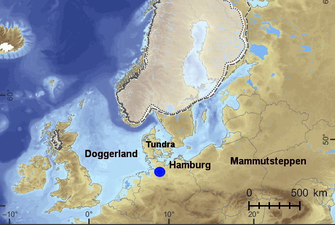 I Storbritannia, Doggerland, Danmark, Tyskland og Europa ellers, var det selvsagt også kaldt. Men innlandsisen nådde ikke så langt sør som den gjorde under siste istids maksimum (geo365.no: «Et land uten liv»). Kulden og frosten hadde like fullt festet seg i jorda. På tundraen og mammutsteppen sør for isen var det likevel nok vekster til at de mest hardføre pattedyrene tilhørende den pleistocene megafauna trivdes godt (geo365: «Istidsgigantene som forsvant»).