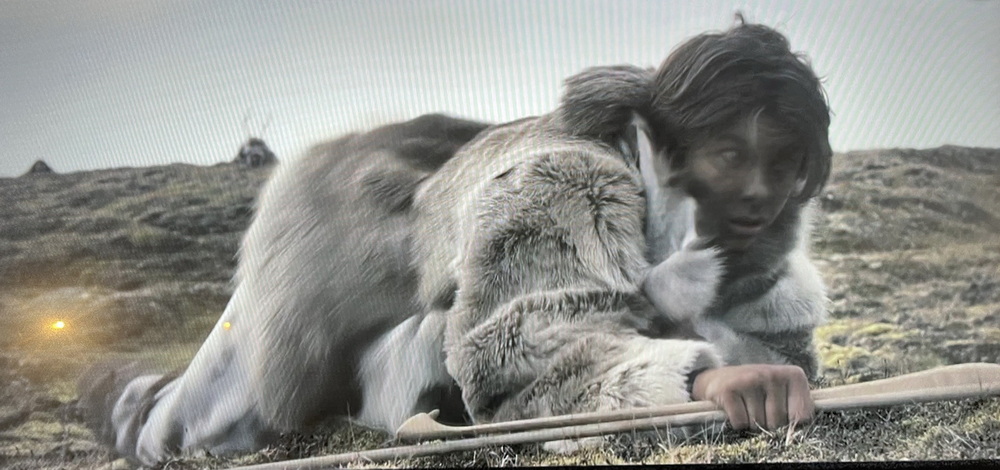 Endelig var de framme. Regnværet hadde gitt seg. Det var erstattet av lett snødrev. Vinden var fortsatt sur, men nå var sikten brukbar. Det var bare å vente på at reinen kom løpende. Ta fram pil og bue. Ha de skarpe flintknivene klare. Legge reinskinn på bakken for å holde varmen, huke seg ned bak store steiner, sitte dørgende stille, ikke skremme de vare dyrene. Nå var det tålmodighet som gjaldt. Da var det til god hjelp å ha litt tørket kjøtt å tygge på.