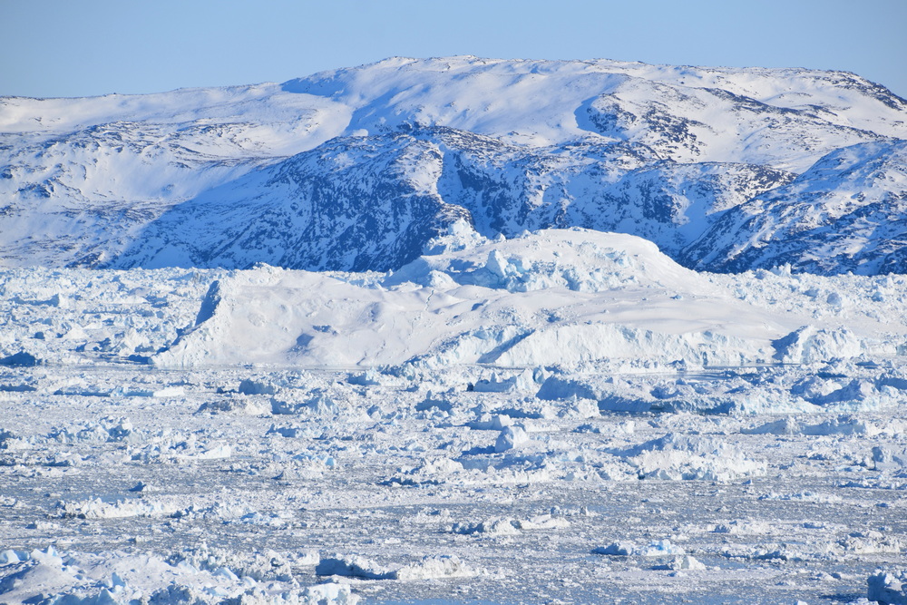 De isfylte fjordene på Grønland er rike på næring i form av hoppekreps og alger. Disse er et gedigent matfat for skalldyr, fisk og pattedyr i havet. Vi kan sammenligne disse forholdene med hvordan det var mot slutten av Istiden i Norge (yngre dryas) og veldig tidlig i preboreal tid. Bildet er fra Ilulissatfjorden på Grønland. Foto: Halfdan Carstens