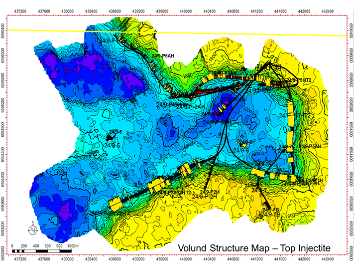 Nå er det fullt ut bekreftet at Volund er en ren injektittfelle. Reservoaret er av paleocen alder (Hermodformasjonen – det siste av tre større paleocene turbidittkomplekser med kilde i vest) og lite konsoliderte sander ble i tidlig eocen tid remobilisert og injisert gjennom den overliggende Balderformasjonen. Det interessante er at injektitter gjerne har bedre reservoargenskaper enn modersandene. Den gjennomsnittlige porøsiteten i Volund-reservoaret er for eksempel hele 34 prosent og 1-6 darcy permeabilitet.