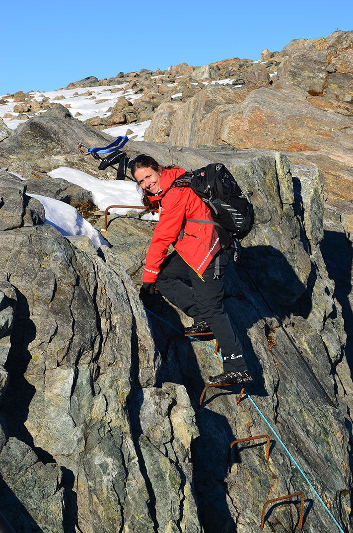 Lene Kristensen på vei ned for å sjekke noen av måleinstrumentene som er utplassert ved Veslemannen. Foto: Halfdan Carstens