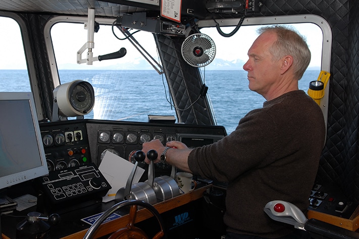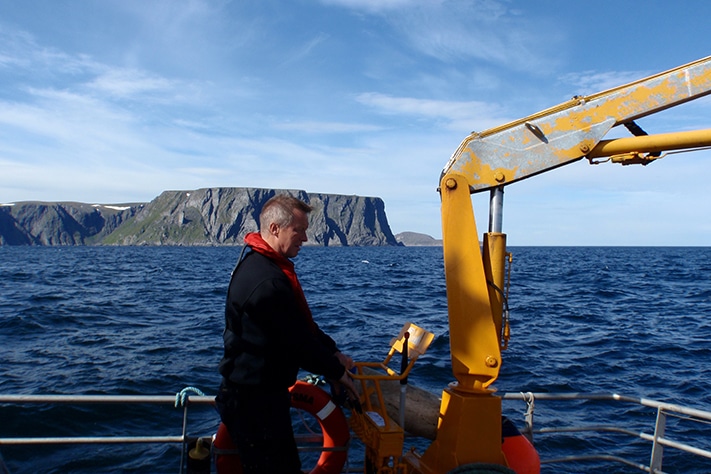 I mai tilbragte han to uker sammen med to kollegaer utenfor Nordland. Det biologiske mangfoldet var gjenstand for undersøkelser, og denne gangen styres skuta i Porsangerfjorden og rundt Magerøya i Finnmark. Rolf Myren, maskinist og altmuligmann, er den som tørner ut først, sjekker motoren, tar runden og – selvsagt – setter på kaffen slik at bordet er dekket når kaptein Longva finner det opportunt å krype ut av køya litt senere.