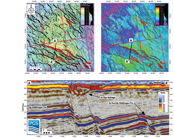 De seismiske dataene gir en god forklaring på hvordan hydrokarbonene kan ha migrert fra flere tusen meters dyp til bare noen hundre meters dyp.