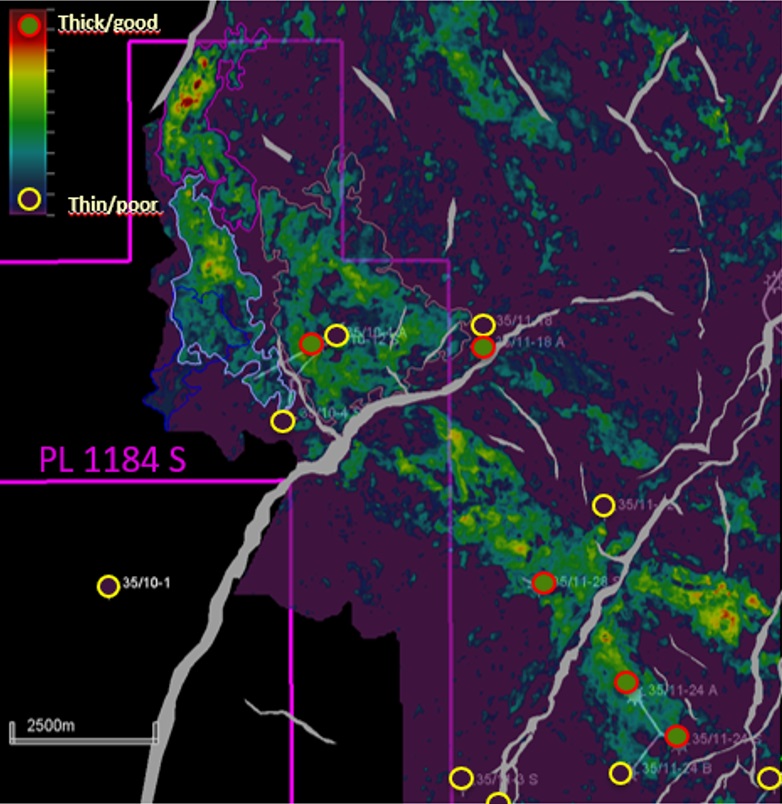 35/10-12 S did indeed find more net reservoir than the discovery well, in line with a less well-developed underlying sand. A 21 m hydrocarbon column was proven, with an average porosity of around 12%. The expected volume range for Gnomoria now stands between 5 and 25 MMboe.