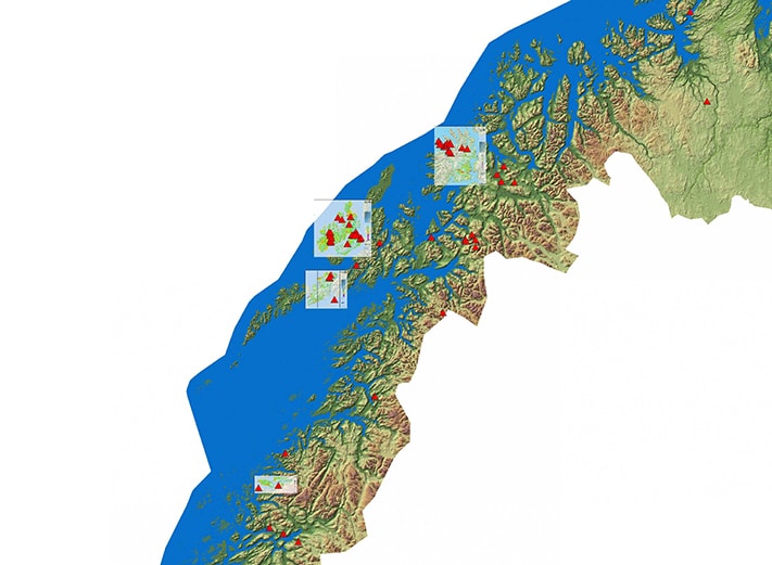 Det har vært drift i tre områder i Norge. På Senja, Lofoten/Vesterålen og i Holandsforden sør for Glomfjord.