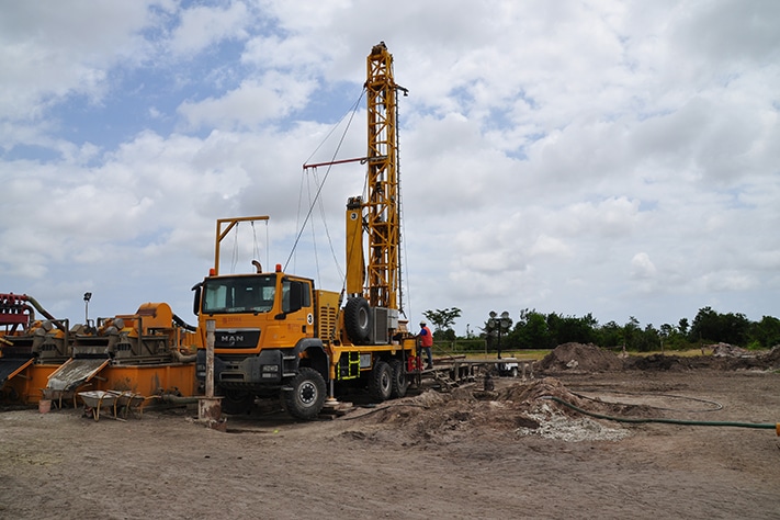 I boringen etter vann sør for Dar es Salaam er prinsippet reversert. Boreslammet sendes direkte fra slamtankene til rommet mellom borestrengen og borehullsveggen (annulus), gjør jobben med å smøre og avkjøle borekronen og flyter raskt opp på innsiden av borestrengen.