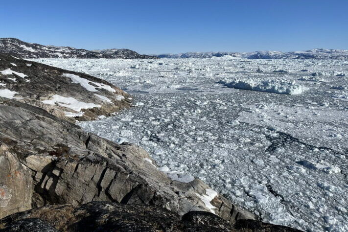 Gjennom eldste dryas var det norske grunnfjellet blottet bare på noen få steder. Kysten hadde derfor sterke likhetstrekk med randsonen til Grønlands innlandsis slik vi kan oppleve den i dag. Bildet er fra Ilulissatfjorden. Foto: Halfdan Carstens