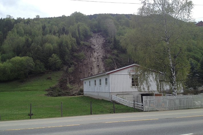 Nok en gang hadde landet vårt blitt rammet av ekstremvær som var medvirkende årsak til en rekke løsmasseskred. Men denne gangen var det kun materielle skader.