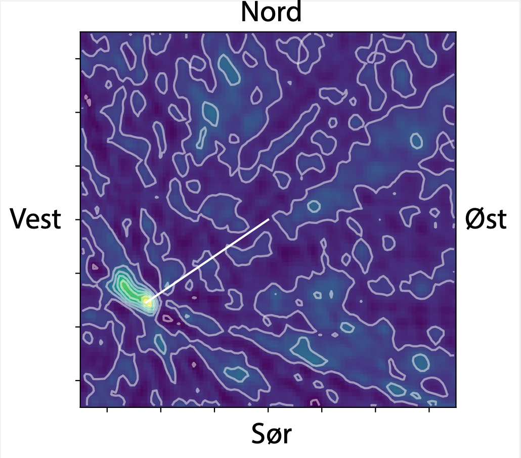 Retningsplottet viser registreringene av en meteor 28. februar 2025 ved Bardufoss. Kilde: NORSAR