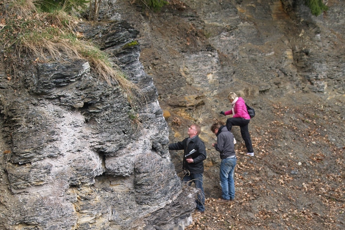 – Alunskiferen ligger først og fremst dypt nede i trauet. Det er bare få steder den kommer til syne på overflaten. Fra de tre Shell-brønnene vet vi nå at alunskiferen er omtrent 100 meter tykk.