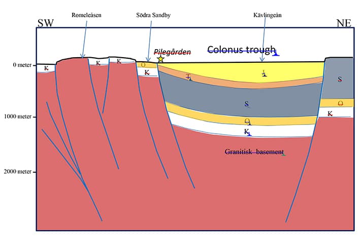 – Kort fortalt gjennomskjæres Skåne av et nordvest-sørøstgående forkastningskompleks som kalles Sorgenfrei-Tornquistsonen. Nordøst for denne finner vi Det baltiske skjoldet med grunnfjellsbergarter, mens vi i sørvest finner sedimentære bergarter.