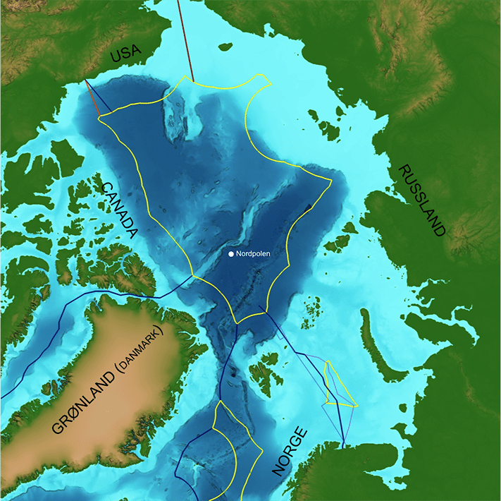 Norge har allerede avklart sine kontinentalsokkelgrenser i Polhavet med Kontinentalsokkelkommisjonen i henhold til Havrettskonvensjonen (GEO 03/2009). Vi har også avklart grensene mot våre naboer i øst og vest i dette området, Russland og Danmark (Grønland).